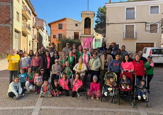 La junta local de AECC de Burbáguena y voluntarios posando para una foto