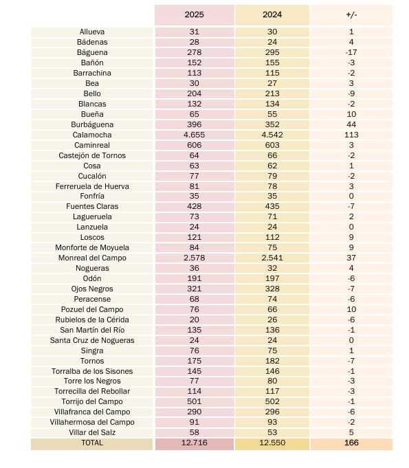 La comarca del Jiloca ha incrementado su población en el último año en 166 personas, según los datos oficiales de la revisión del Padrón Municipal a 1 de enero de 2025. Con este aumento, la demarcación alcanza un total de 12.716 habitantes, consolidando la tendencia positiva iniciada en los últimos ejercicios.
