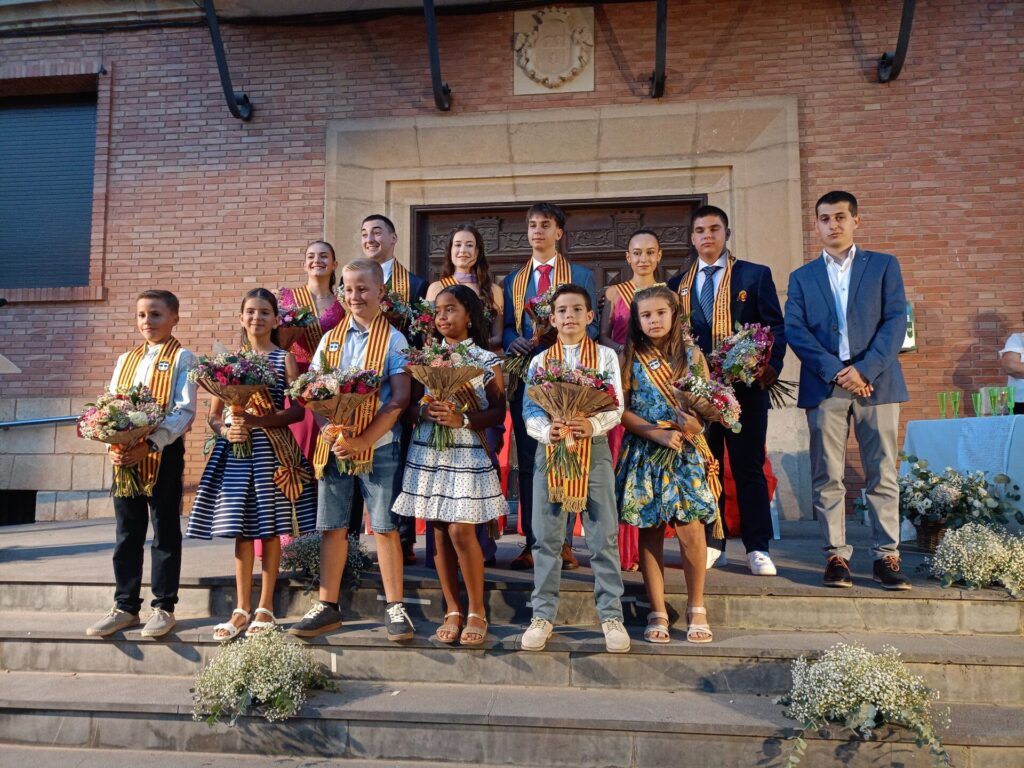 Posteriormente, subieron al escenario los representantes más mayores de la juventud de Monreal: Emma Sanz, Unai Lizama, Elena Muñoz, Diego Villuendas, Ana Torrijo y Francisco Beltrán.