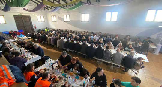 El menú, preparado por la organización, congregó a más de un centenar de comensales. Posteriormente, la tarde dio paso al espectáculo circense ‘La Bengala y la Maleta’, seguido de la obra teatral ‘Lo que el Cierzo se llevó’, interpretada por el humorista Alfonso Palomares.