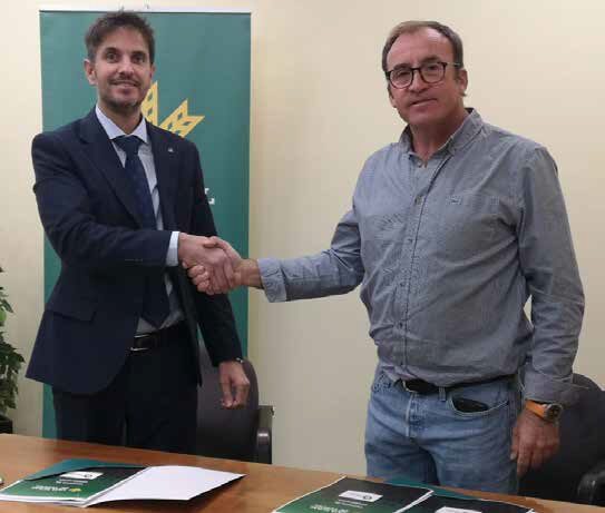 A la firma, realizada en el salón social de Caja Rural de Teruel en Calamocha, han asistido Antonio San Roque, presidente de ACIC, y Rubén Aguilar, director de Zona Oeste de Caja Rural de Teruel.