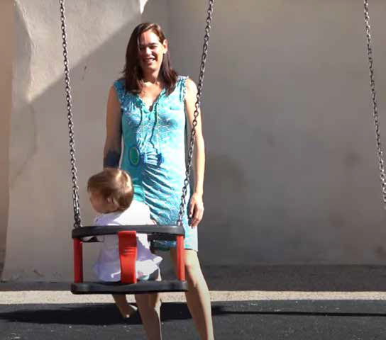 María Sancho junto a su hija en el parque de Navarrete del Río